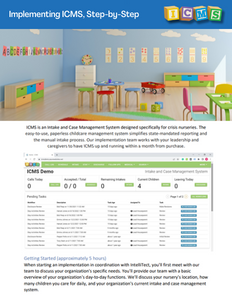 ICMS is a childcare management software designed side-by-side with Vanessa Behan to simplify your crisis nursery’s intake and case management process. ICMS eliminates paperwork, records details in real-time, helps you focus on relationships, and much more!
